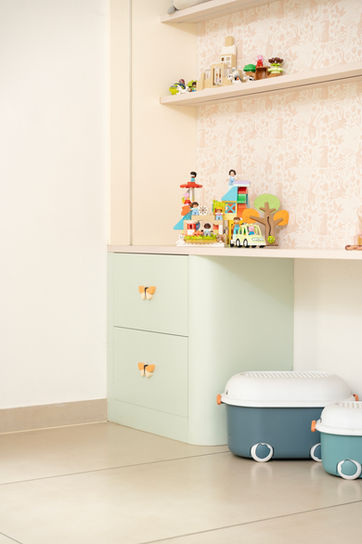 Designed a modern and minimal interior for a villa in Elysium Gold Crest. A subtle colour palette brings a sense of calm throughout the villa, while the children's room offers a serene escape in pastel tones. The project features bespoke customized furniture in every space, tailored for a unique living experience. A harmonious blend of personalized design and contemporary elegance.