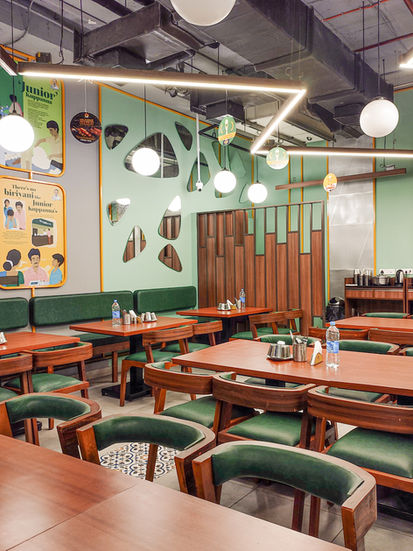 Junior Kuppanna is a globally recognized brand for its authentic South Indian cuisine. This project aim was to create a restaurant that captures the brand's spirit with a vibrant atmosphere and flexible seating. It will cater to both locals and tourists, providing a memorable dining experience in a warm environment.
